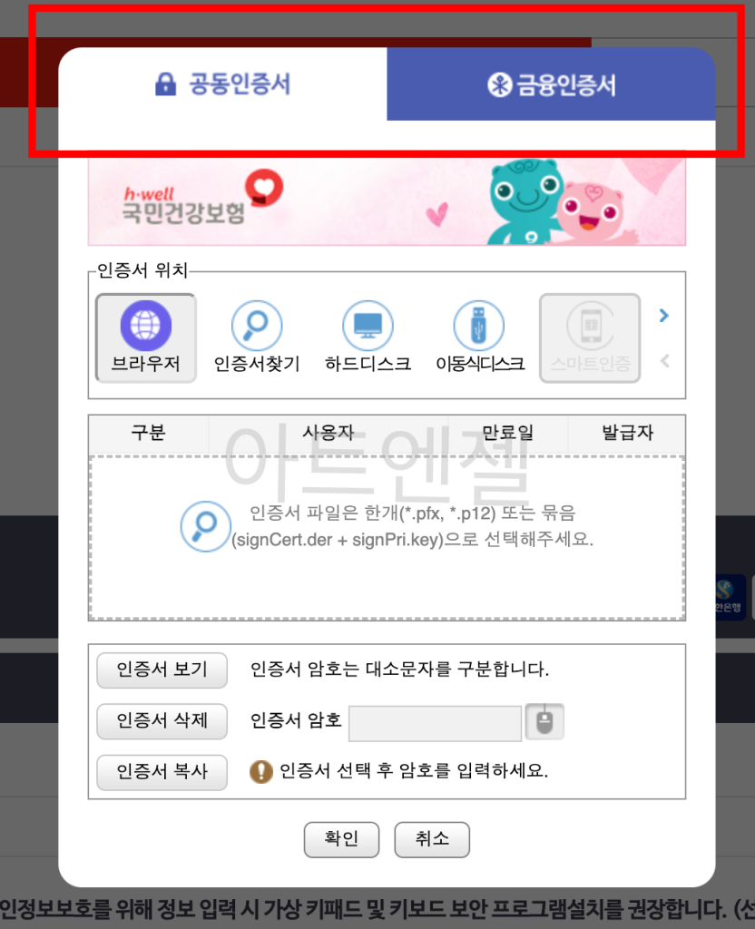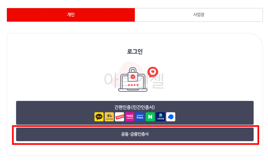 2. 간편인증 또는 공동 및 금융인증서가 있습니다.
