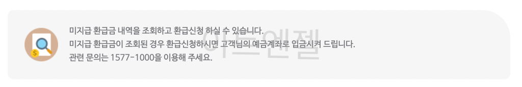 7. 미지급 환급금에 대한 질문사항이 있는 경우에는 “1577-1000″을 통해서 자세한 내용을 상담을 받을 수 있습니다.