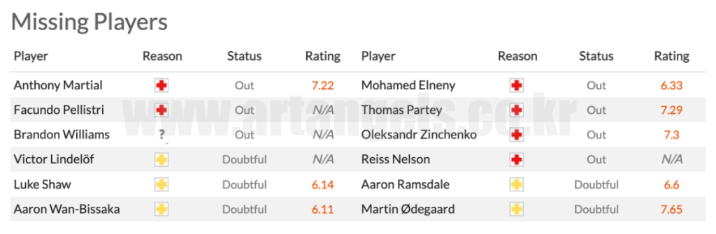 - 알베르 삼키 로콩가는 주중에 아스톤 빌라를 상대로 미드필드에서 파티를 교체했으며 여기에서 그의 자리를 유지하기를 희망할 것입니다. 벤 화이트는 중원으로 이동할 수 있습니다.