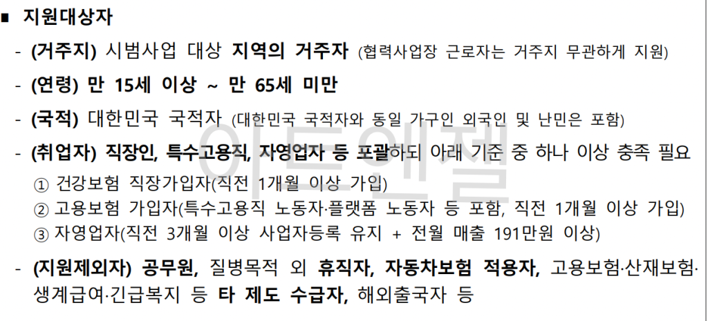 - 고용보험 가입자(특고, 노동자 및 플랫폼 노동자 등 1개월 이상 가입자)