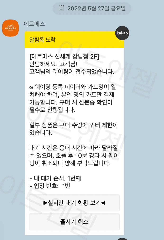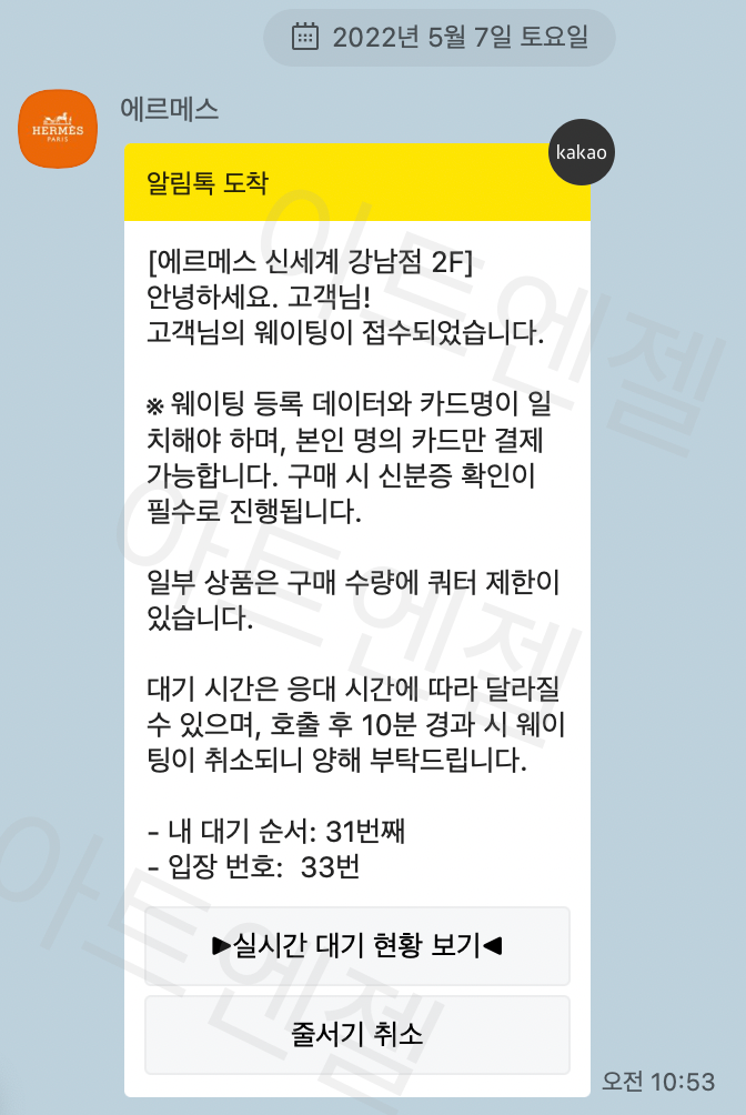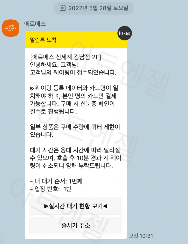 실제로 에르메스를 구매하기 위해서 6~7번을 도전했습니다. 에르메스 매장을 오후에 방문하게 되면 입장 자체가 불가능합니다. 오전에 미리 방문 예약을 걸어둔 사람이 많기 때문에, 입장 자체가 많이 힘듭니다. 어떤 입구에 가는 것에 따라서 순번 자체가 달라집니다.