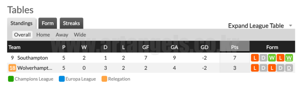 사우스햄튼은 2승 1무 2패를 기록하며 승점 7점으로 리그 9위를 기록하고 있습니다.