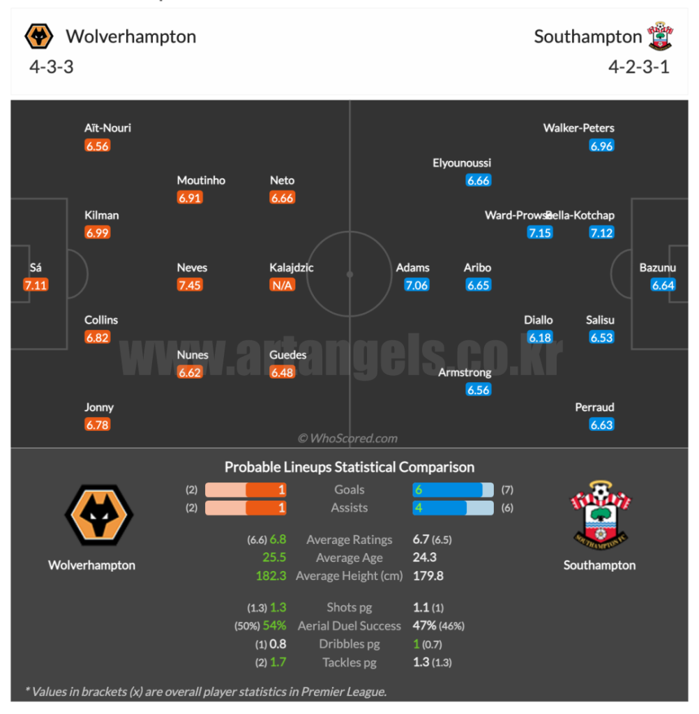 울버햄튼은 사우스햄튼 상대로 최근 6경기에서 4승 1무 1패를 기록한 바가 있습니다.