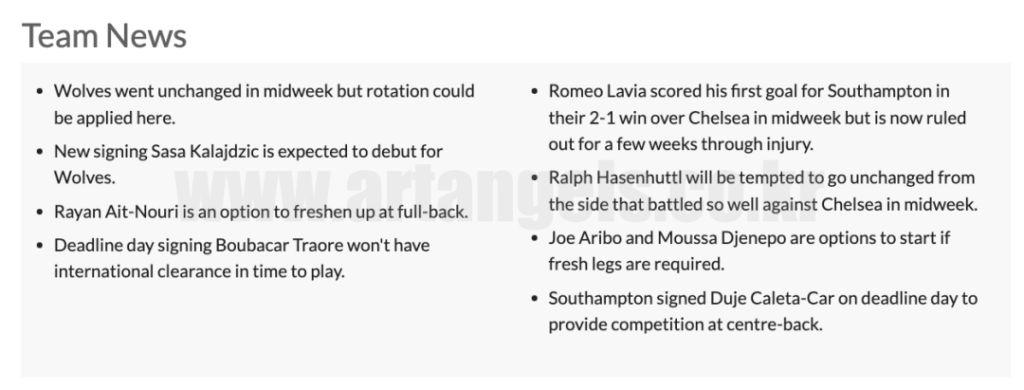 - 울버햄튼은 주중 경기 라인업에 변화가 없었지만, 이번 경기에 변화를 줄 수 있습니다.