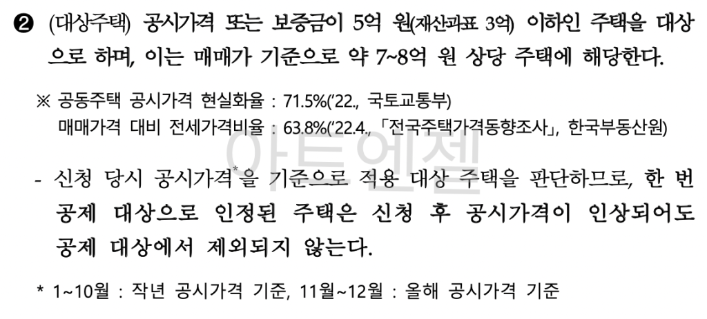 - 공시가격 또는 보증금 5억원 이하인 주택 대상입니다.