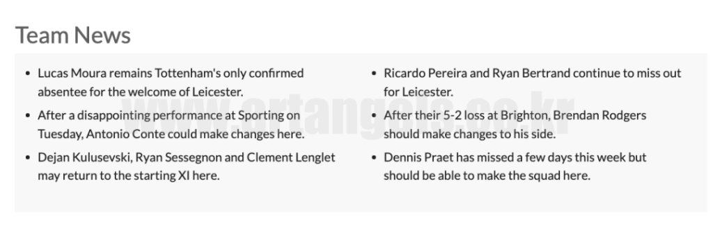 - 토트넘과 레스터시티 축구 중계에 대한 정보만 필요하신 분은 하단 배너를 참고해주세요.