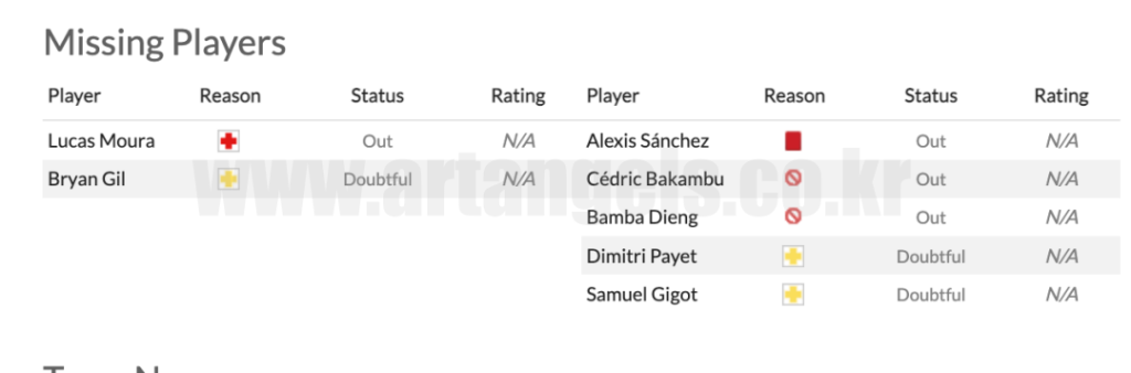 - 루카스 모우라(Lucas Moura)는 토트넘에서 유일하게 확인된 결석으로, 브라질인은 주말까지 결석했다.