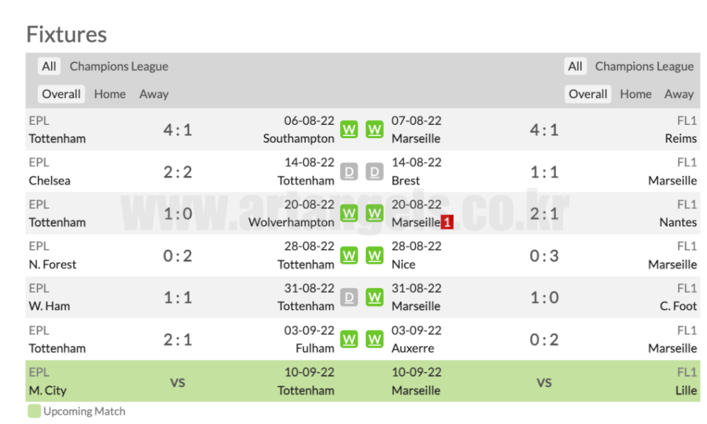 마르세유 역시 리그에서도 5승 1무를 기록하면서, 파리생제르망과 동일한 승점으로 리그 2위를 달리고 있습니다.