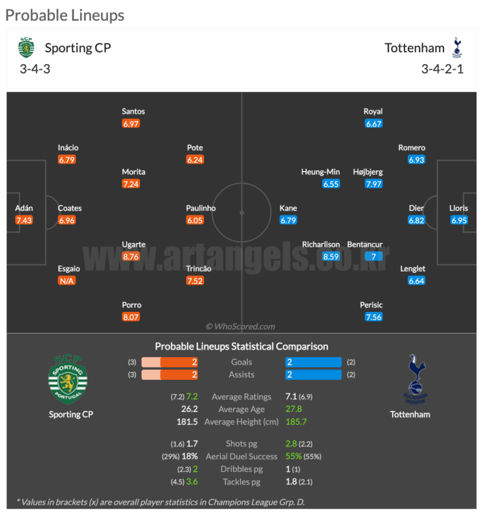 토트넘은 프리미어리그 7라운드는 모든 경기가 취소되고 1주일 동안 휴식기를 가질 수 있었습니다. 이와 반대로 스포르팅은 직전 경기에서 대량의 득점을 기록한 바가 있습니다.