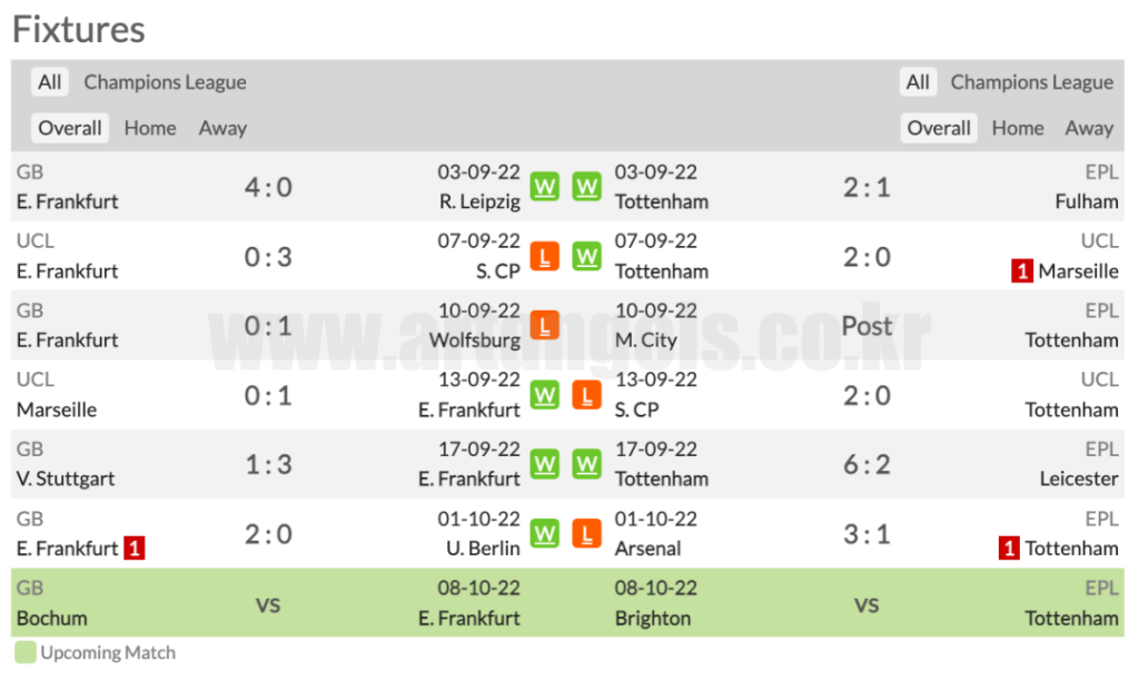 2022년10월5일 아인트라흐트 프랑크푸르트 토트넘 홋스퍼 FC 중계 사이트