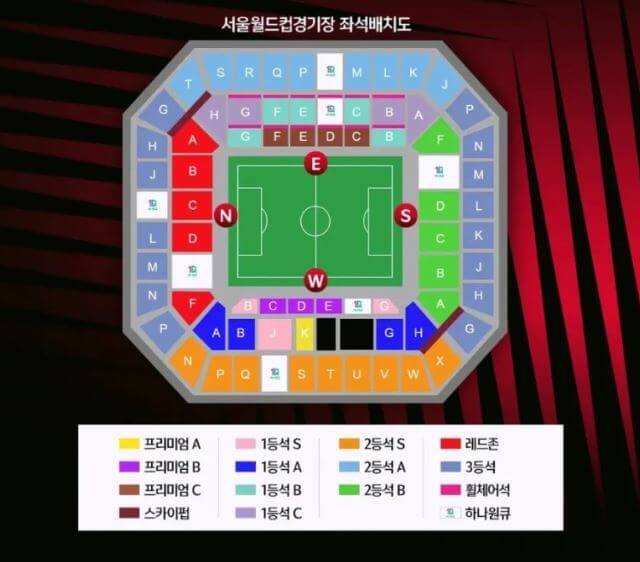 월드컵 축구 경기장 배치도는 본인이 구매한 티켓에 따라서 차이가 발생합니다. 하단 배치도를 사전에 확인하고 구매하는 것을 권해드립니다. 한국과 이집트 축구 경기장은 서울 월드컵 경기장에서 킥오프 예정입니다.