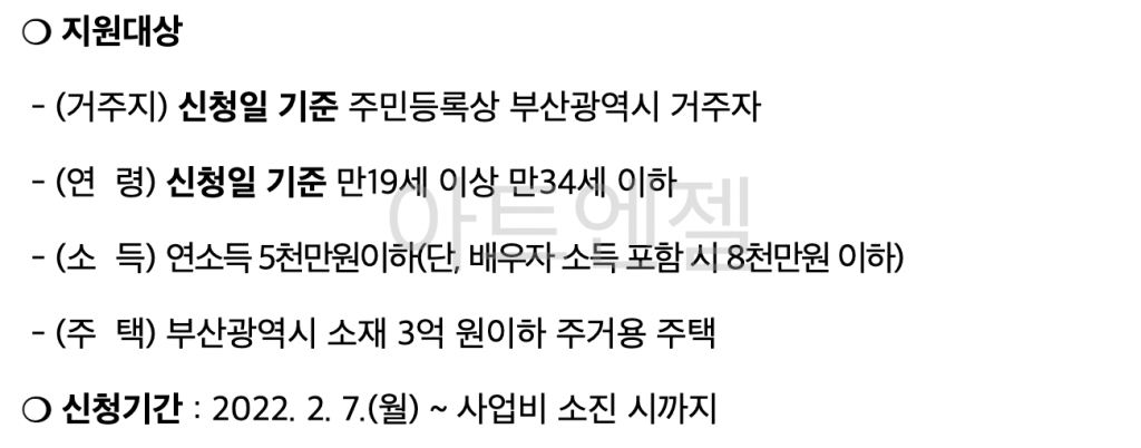 - 신청일 기준 주민드록상 부산광역시 거주자