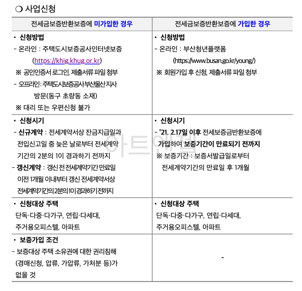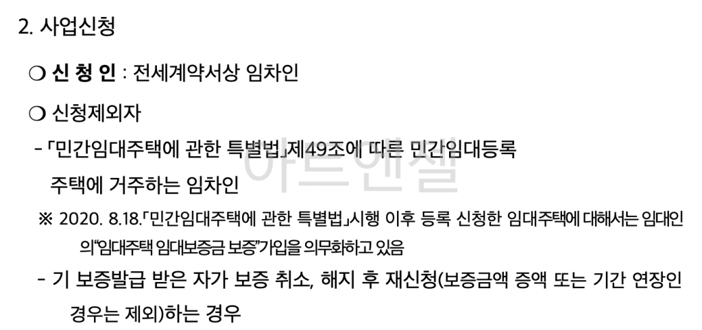 - 사업 신청은 전세금보증반환보증 가입 또는 미가입에 따라서 절차가 다릅니다.